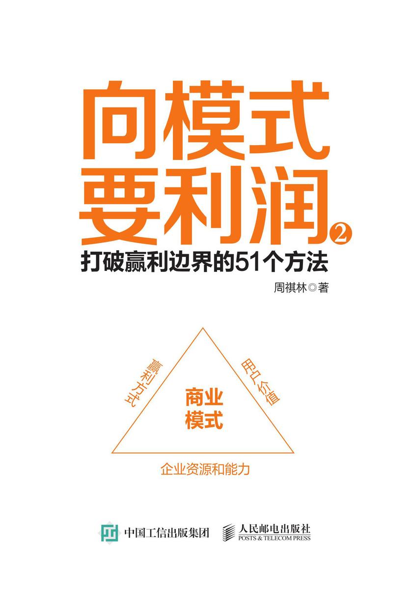 周祺林教授潜心研究商业模式十余年,他把自己的心血凝聚于《向模式要利润:商业模式颠覆、创新与重构》这本新书,带给读者的将是非常不一样的阅读感受和商业思维的冲。 周祺林教授从商业模式的真相出发,探讨商业模式对企业利润的重要影响,并通过对商业模式在企业定位、价值、风险管理、利润池分配和扩大、创新等方面的论述,融合自己多年来从事相关咨询、培训和管理方面的经验,并结合国内外商业模式作为案例行分析,从而让读者能够深地了解商业模式对利润的重要性,并一步获得如何去创新改革企业商业模式的方向。